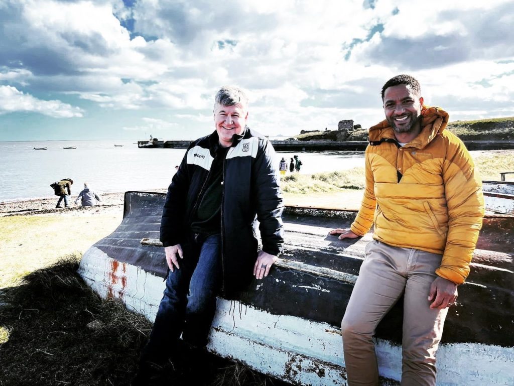 Rev Dr Ash Barker and Sean Fletcher on Holy Island
